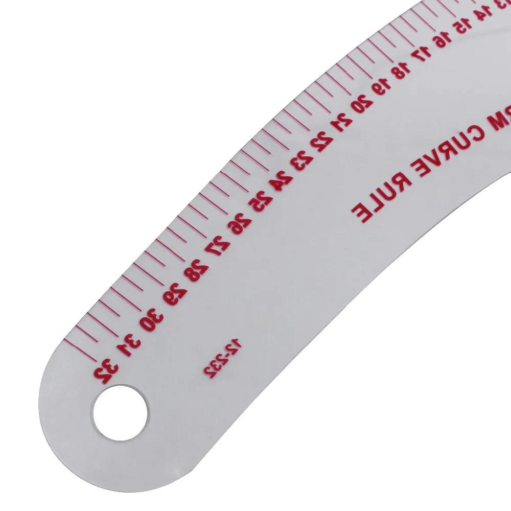 Степень: 12-232 метрический 32 см Описание: 12-232 прозрачный материал кривая резки линейки, встроенные линии долговечны. Он используется для многих целей, таких как профессиональные рукава, рукава, шейные линии и т. Д. Это незаменимый инструмент для профессионалов моды.