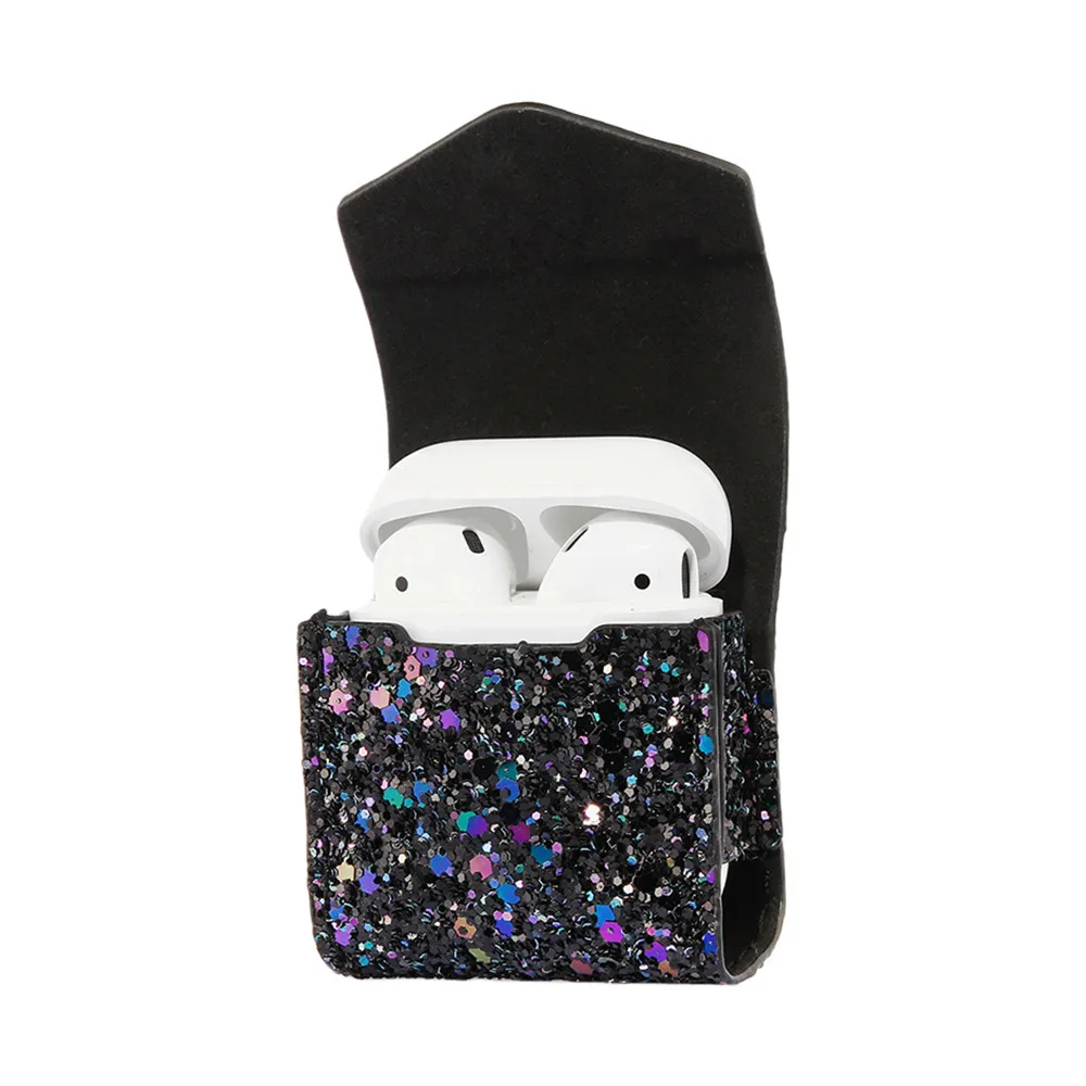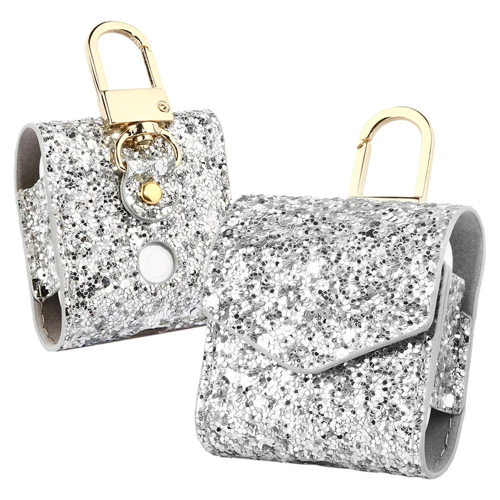 Чехол для AirPods с магнитной застежкой, кожаный чехол с блестящим кольцом для ключей от потери