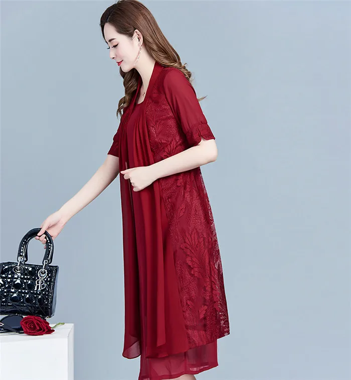 2 шт./компл., женские кружевные платья, костюм, весна-осень, новинка, для среднего возраста, для мамы, модный элегантный 4XL плюс размер, комплект, платье без рукавов + кардиган 149