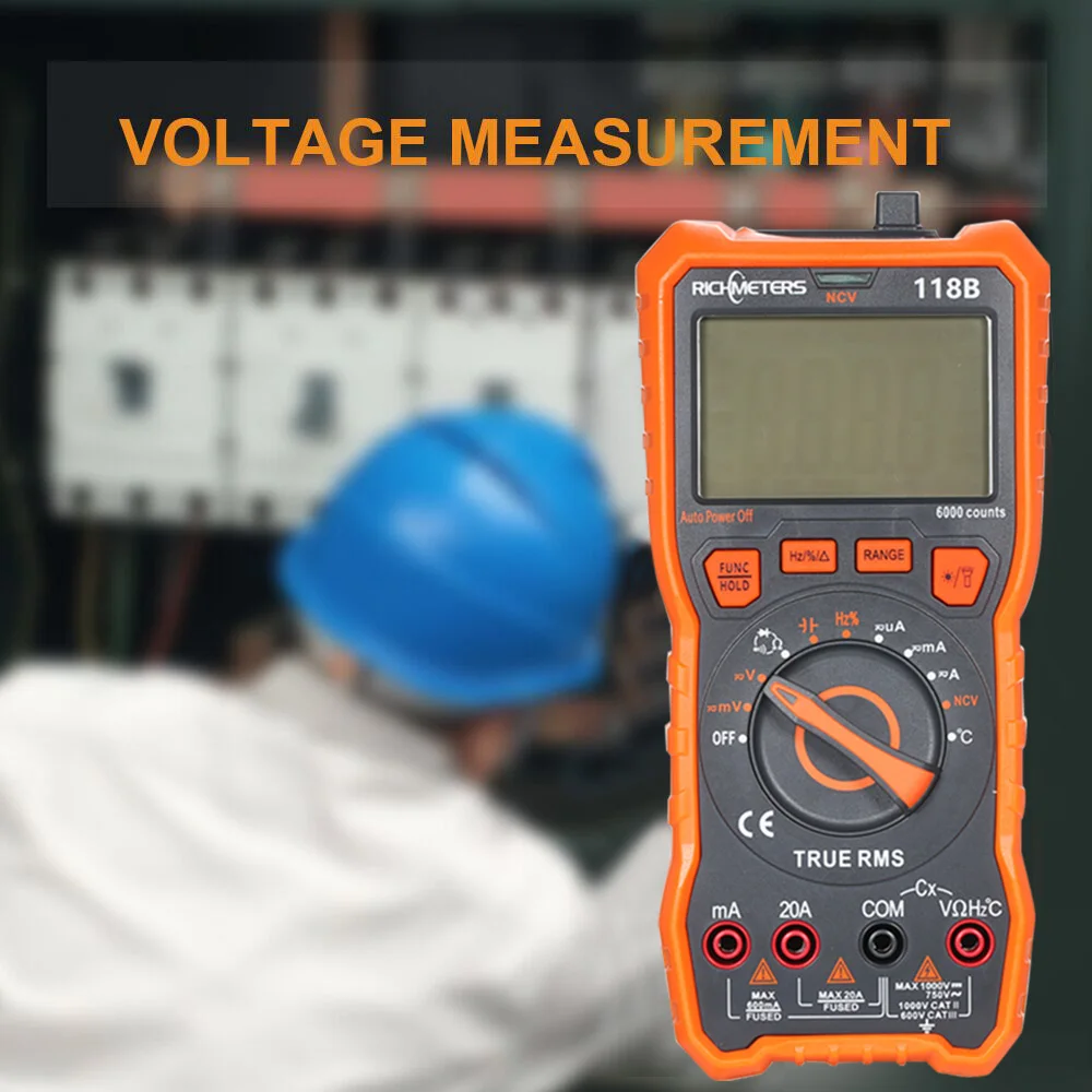 Многофункциональный, может измерять напряжение переменного/постоянного тока, переменный/постоянный ток, сопротивление, емкость, частоту, NCV, диод, температуру, непрерывность.