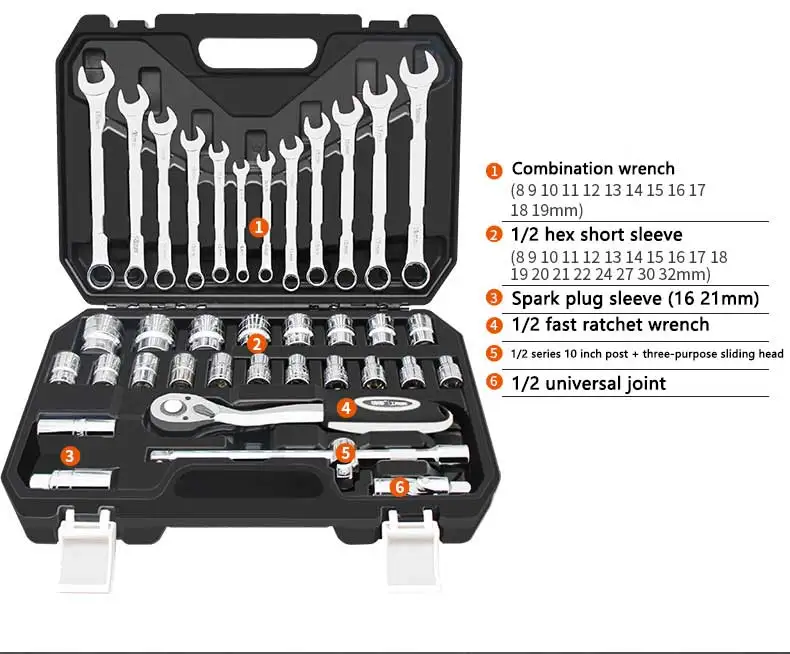 37-piece профессии автомобиля удаления Набор инструментов Набор гаечный ключ Набор торцевых головок автосервис автолюбителю набор ключей для ремонта ручных инструментов
