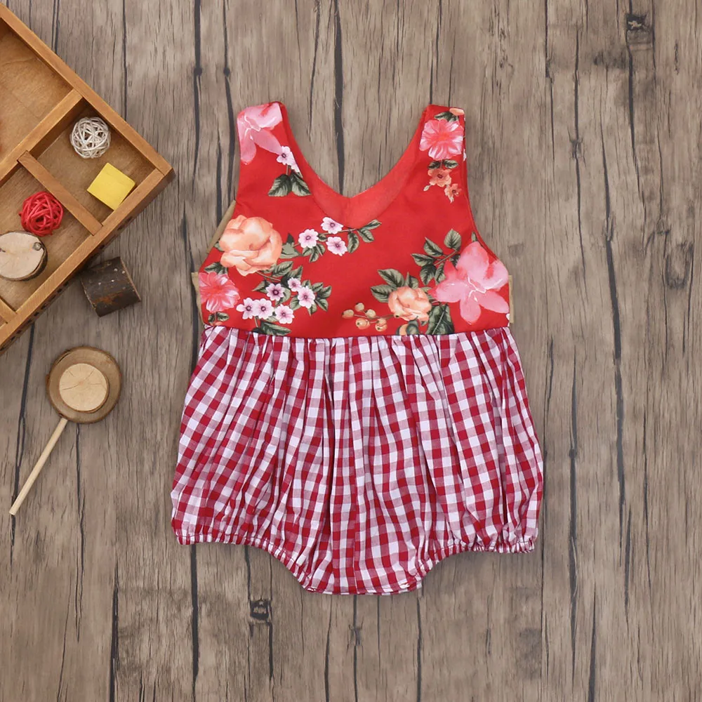 Клетчатый жилет без рукавов с цветочным принтом для маленьких девочек; комбинезон; одежда