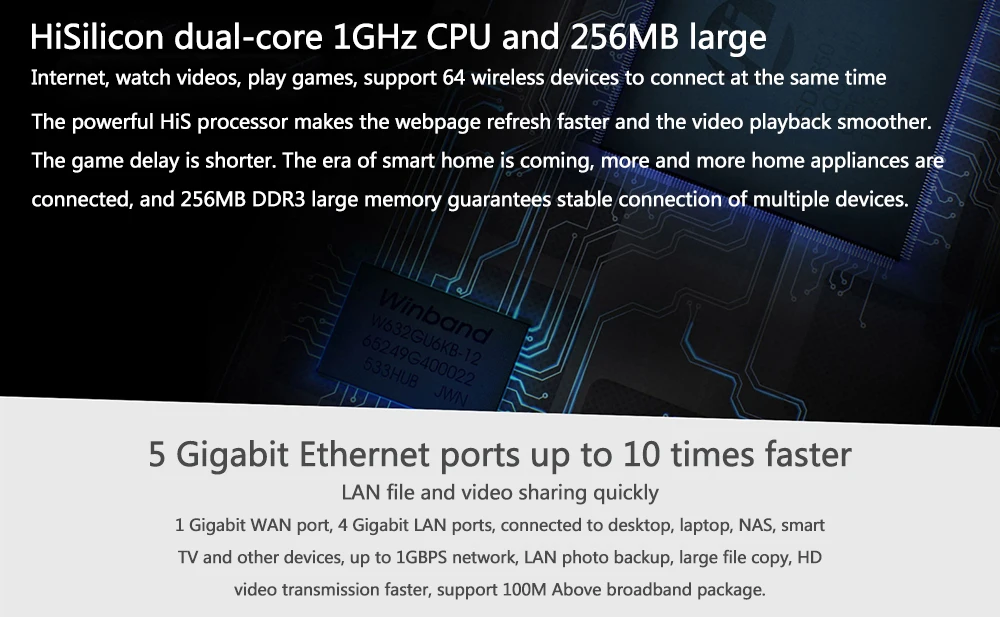 Мощный его процессор делает веб-страницу обновляться быстрее, а воспроизведение видео более плавным. Задержка игры короче. Наступает эпоха умного дома, подключается все больше бытовой техники, а 256 Мб оперативной памяти DDR3 гарантирует стабильное подключение нескольких устройств.