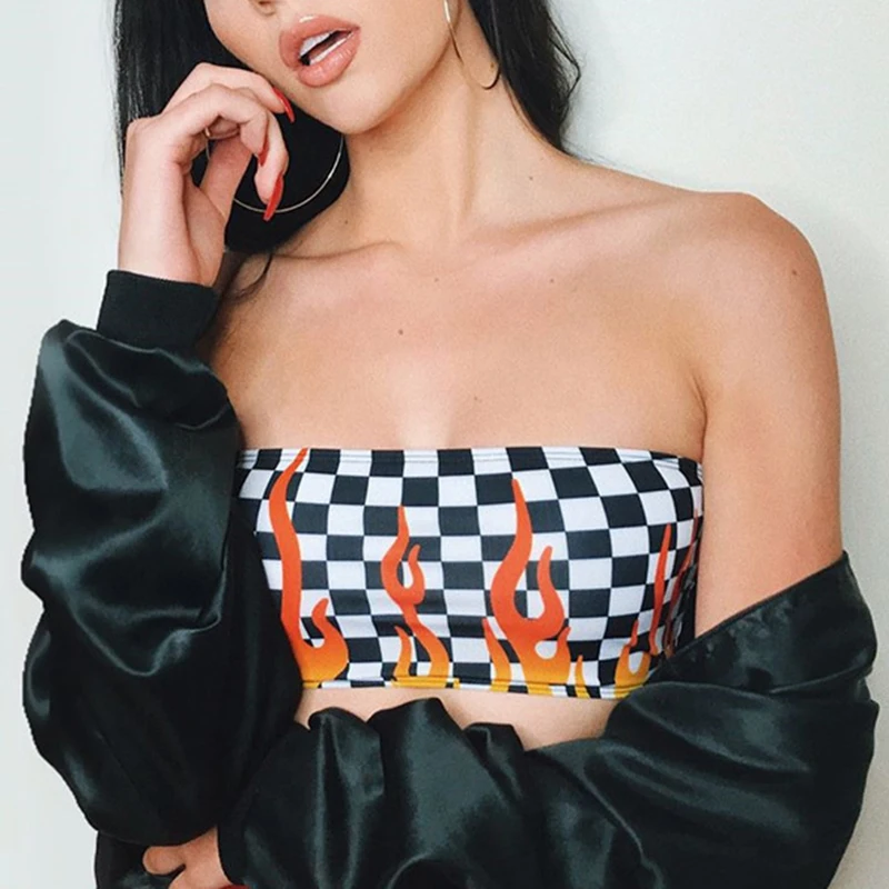 * Описание товара: сексуальный бюстгальтер для женщин и девочек; топ с принтом в виде квадратов пламени; накидка на грудь; жилет; укороченный топ