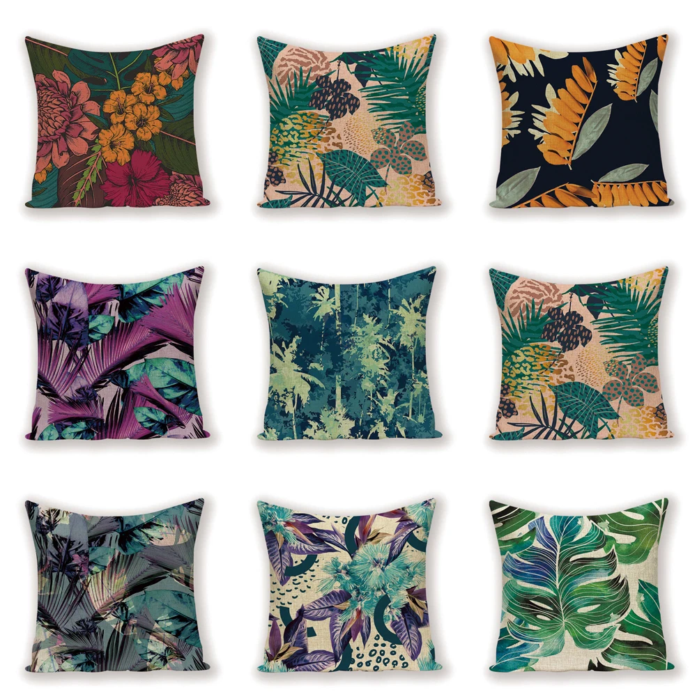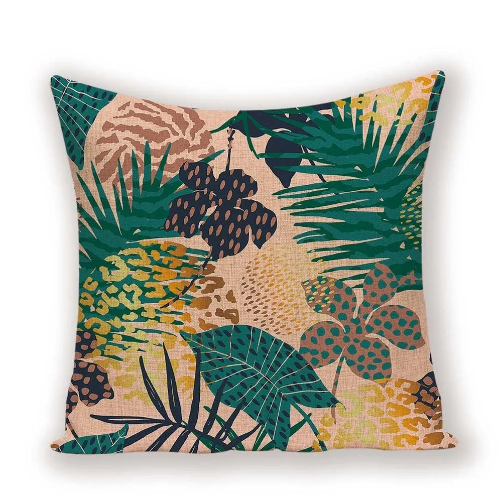 | Зеленая Подушка, винтажные декоративные наволочки, цветочные Цветные подушки для гостиной, тропические листья джунглей, ткань Kissen |