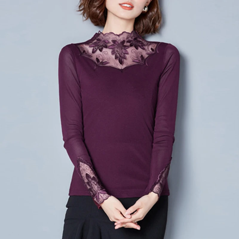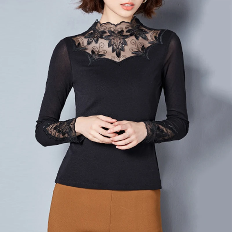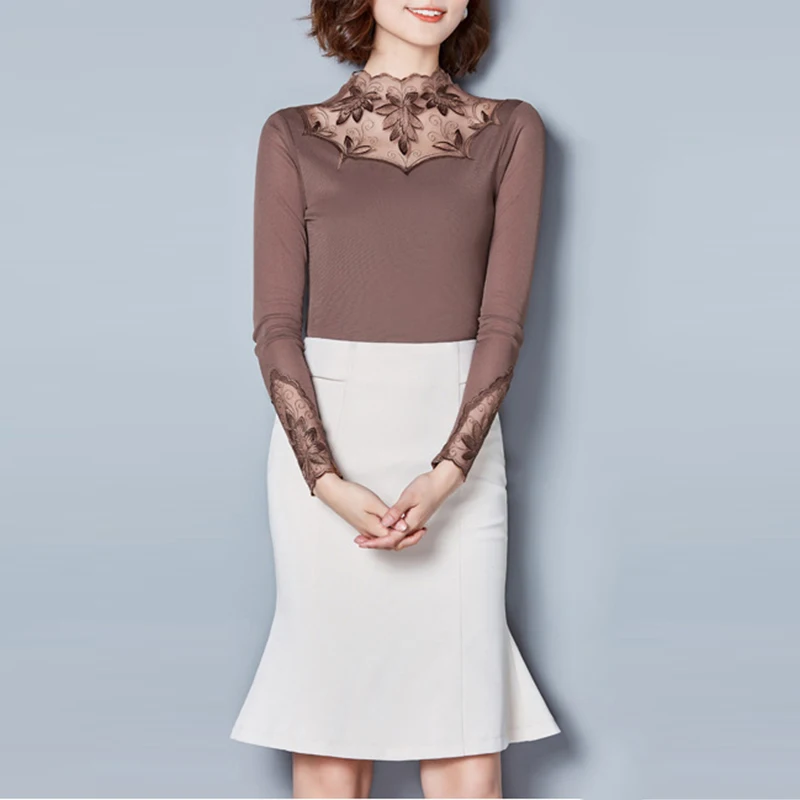 * Описание товара: Новинка 2018 года; Женская Повседневная облегающая Кружевная футболка с длинными рукавами; элегантные топы; Elegant