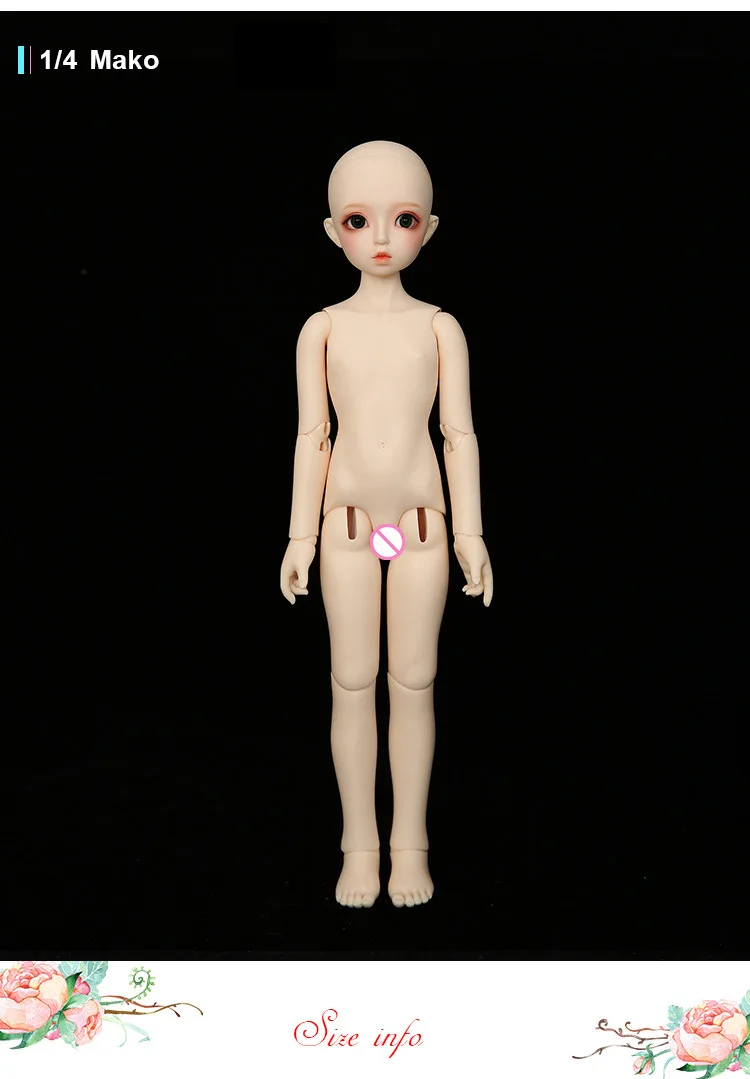 Высота: 42 см • обхват головы: 19,5 см Окружность шеи: 7,0 см плечо: 9,0 см Обхват груди: 18,2 см, длина рукава: 14 см Обхват талии: 14,6 см длина ноги: 20 см Обхват бедер: 19,0 см длина стопы: 5,5 см Ширина стопы: 2,7 см