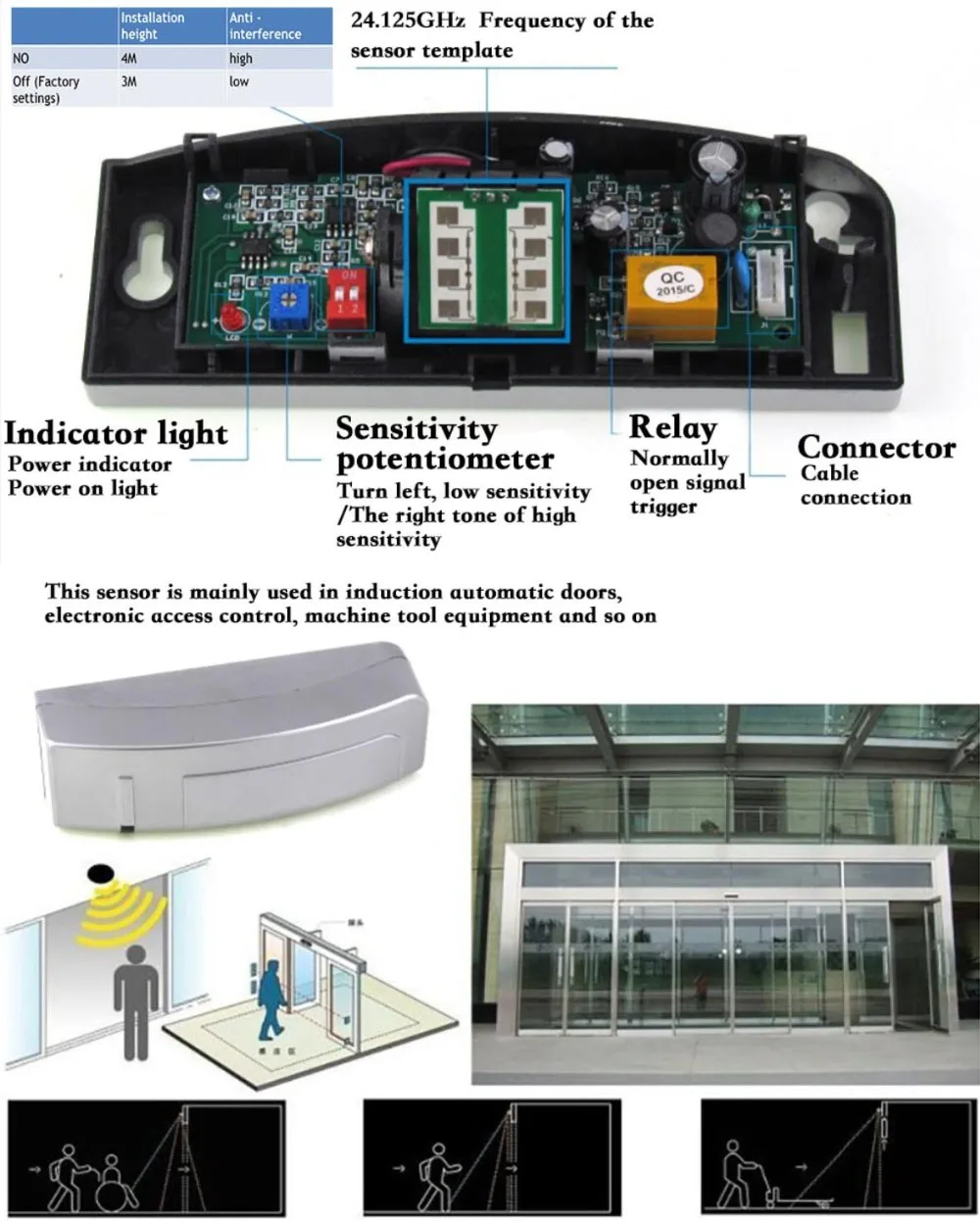 Датчик движения для автоматической раздвижной стеклянной двери 4*2 м дальность обнаружения