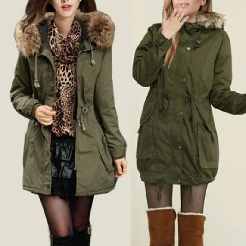 * Описание товара:Женское теплое длинное пальто с меховым воротником, куртка с капюшоном, Тонкая зимняя парка, верхняя одежда, пальто