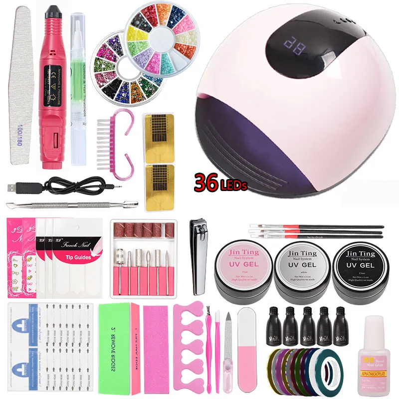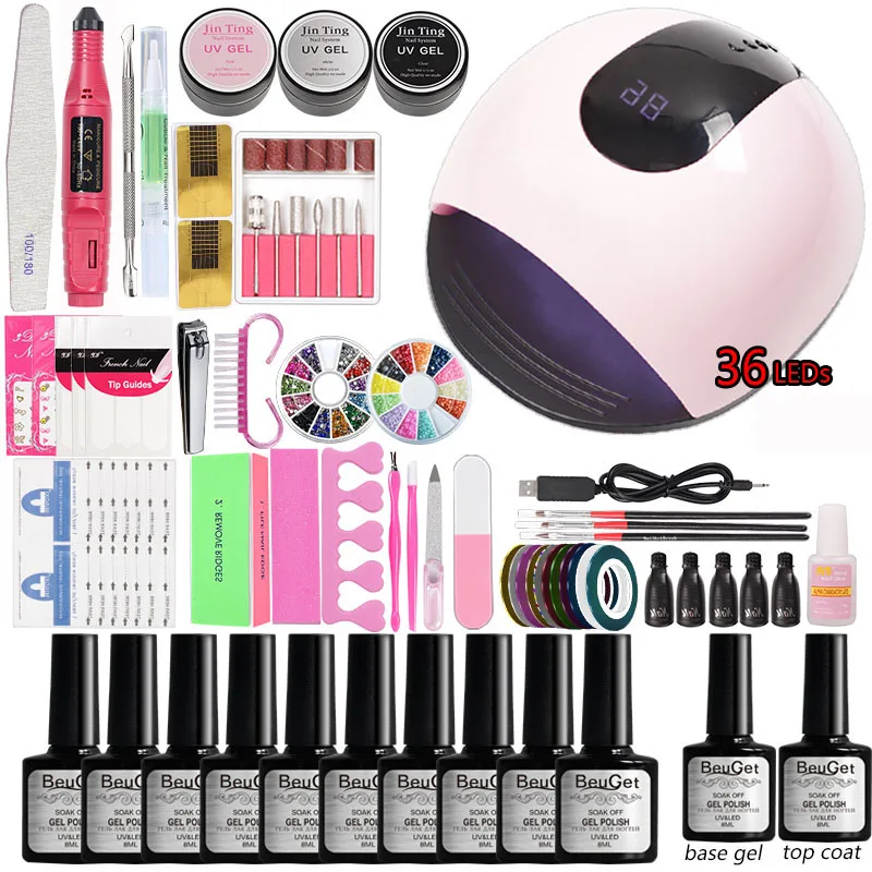 Для маникюрного набора акриловый набор для ногтей с УФ лампой набор гель-лаков для ногтей цвета полигель набор 45 Вт/80 Вт Led сушилка машина инструмент для дизайна ногтей