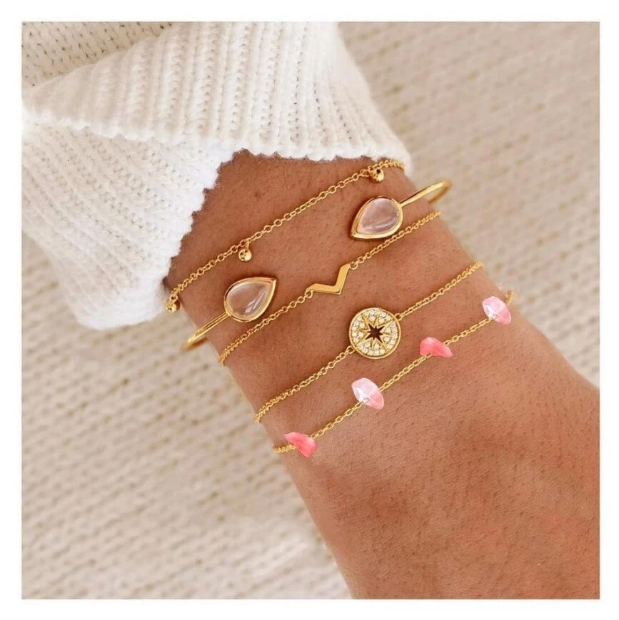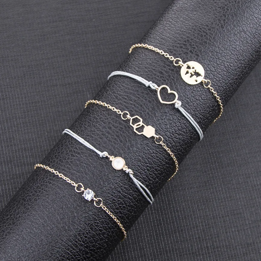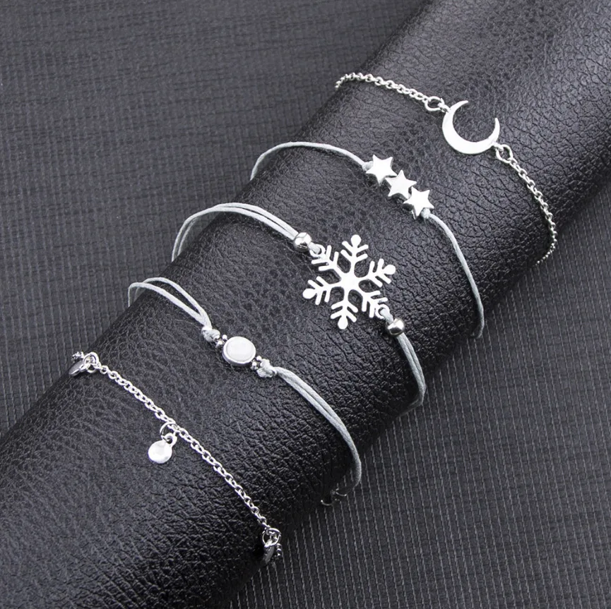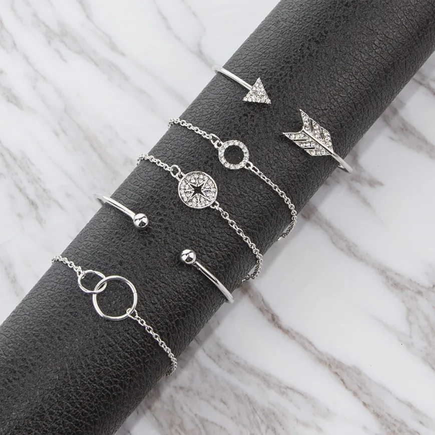 Новый женский браслет, набор, открытый регулируемый браслет, золото, серебро, шарм, женский браслет, набор, летний отдых, одежда, аксессуары