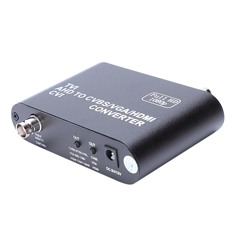 TVI/AHD/CVI в CVBS/VGA/HDMI HD видео конвертер может передавать TVI/AHD/CVI в HDMI/VGA/CVBS выход цифровой обработки, который будет способствовать качеству изображения и продвигать сигнал TVI/AHD/CVI и CVBS и выход HDMI до 1080 p, поэтому изображение будет более четким и стабильным.