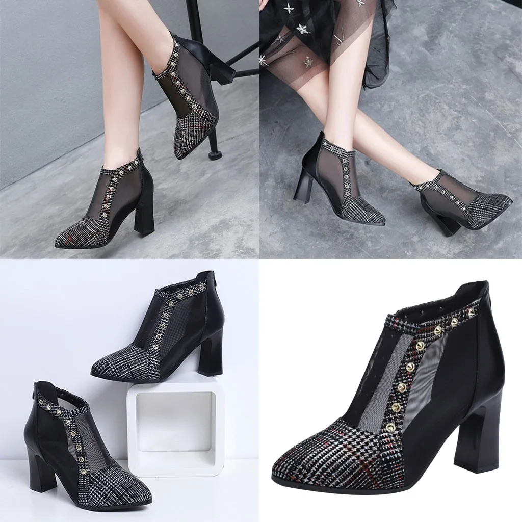 Женские летние повседневные Модные ботильоны из сетчатого материала; обувь на высоком каблуке