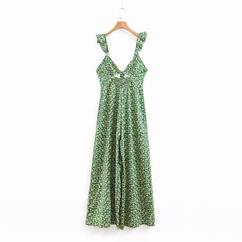 Женский богемный комбинезон SheMujerSky, длинный комбинезон с широкими штанинами, оборками, v-образным вырезом и цветочным принтом, 2019