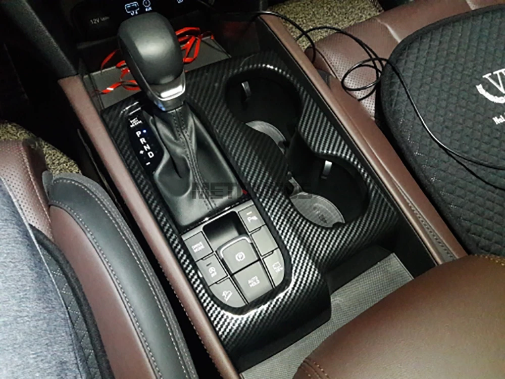 ABS углеродное волокно коробка переключения передач крышка отделка держатель стакана воды декоративная рамкаДля Hyundai Santa Fe 2019 2020Аксессуары для внутреннего автомобиля