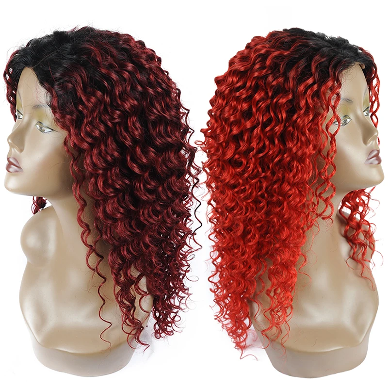 Pinshair бордовые парики из натуральных волос на кружеве для женщин T1B/99J Омбре парик на фронте шнурка перуанские вьющиеся волосы закрытые парики не Реми