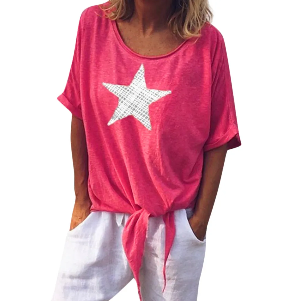 Женская Повседневная Блузка с круглым вырезом и коротким рукавом