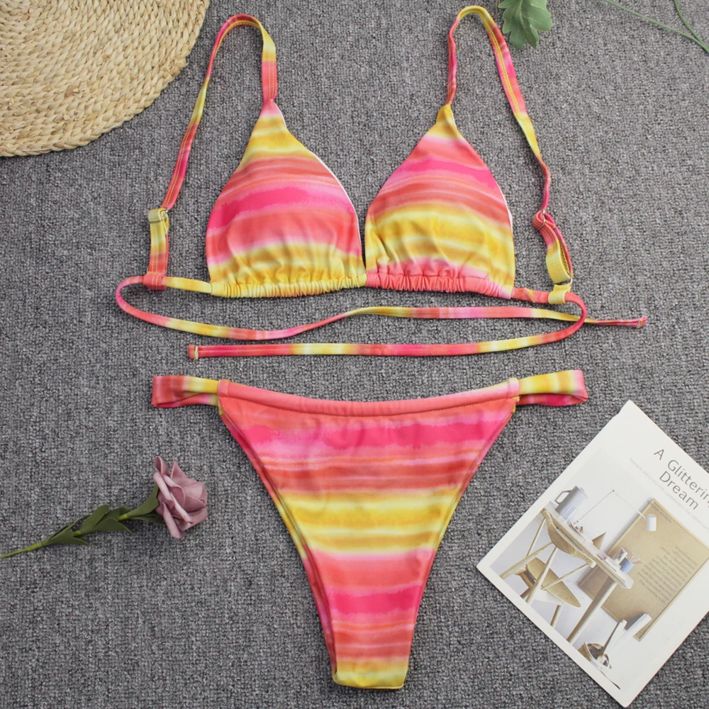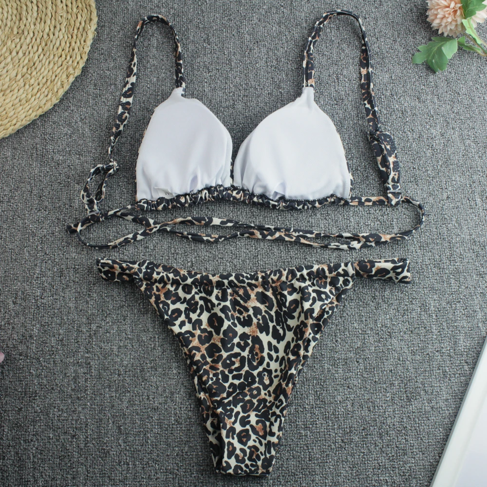 Бразильское бикини с леопардовым принтом и открытой спиной лето 2019|Комбинезоны| |