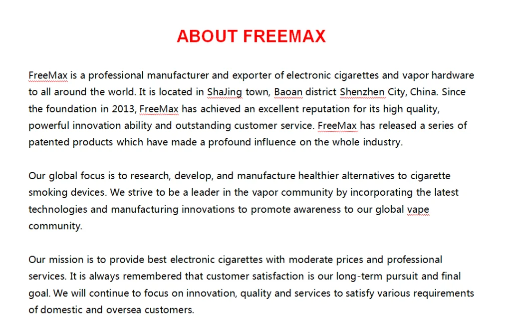 Freemax запустил первую в мире сетчатую катушку Sub Ohm Tank - Fireluke M в конце 2017 года. И теперь, мы с гордостью объявляем, что Freemax запускает первый в мире двойной и тройной сетки катушки Sub Ohm Tank - Freemax M Pro снова. С двойной и тройной технологией катушки сетки, Freemax M Pro может поддерживать более высокую мощность даже между 80-110 Вт с гораздо большими облаками, однако, это не означает, что это поставит под удар такой вкус, как облачные резервуары. С другой стороны, Freemax M Pro-это первый бак sub ohm с таким большим ароматом, который вы никогда раньше не испытывали даже с RDA. Кроме того, команда Freemax Tech уделяет огромное внимание каждой детали танка, поскольку мы стремимся сделать Freemax M Pro единственным танком, который вам когда-либо нужен!