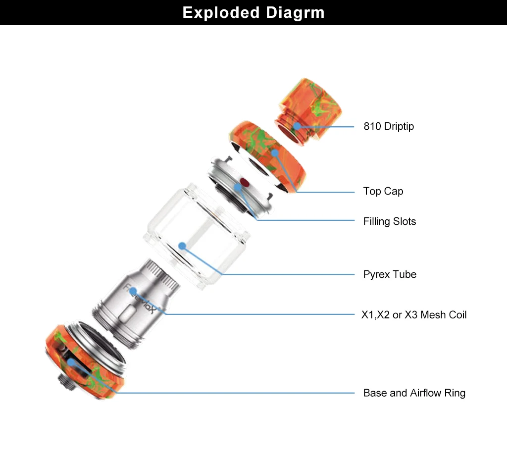 * Стекло Pyrex + 316L * Максимальная емкость сока 6 мл Дополнительно 5 мл и 4 мл емкость сока-тонкий профиль * Сетка Pro система катушки Kanthal Одиночная сетка 0,15 Ом Катушка-номинальная для 40-70 Вт Kanthal Двойная сетка 0,20 Ом Катушка-номинальная для 60-90 Вт Kanthal Тройная сетка 0,15 Ом Катушка-номинальная для 80-110 Вт SS316L Одиночная сетка 0.12ohm Катушка-номинальная для 400 ℉-550 ℉