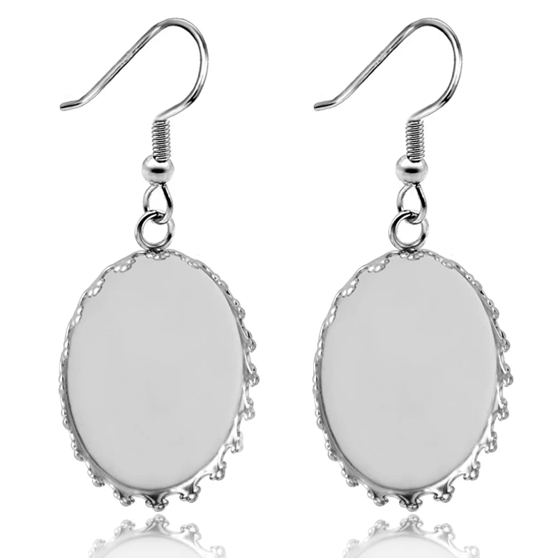 10 шт., серьги-Крючки для ушей из нержавеющей стали, кабошон, пустая основа, подходит для 13x18 мм, 18x25 мм, стеклянная смола, ювелирные изделия, женские аксессуары