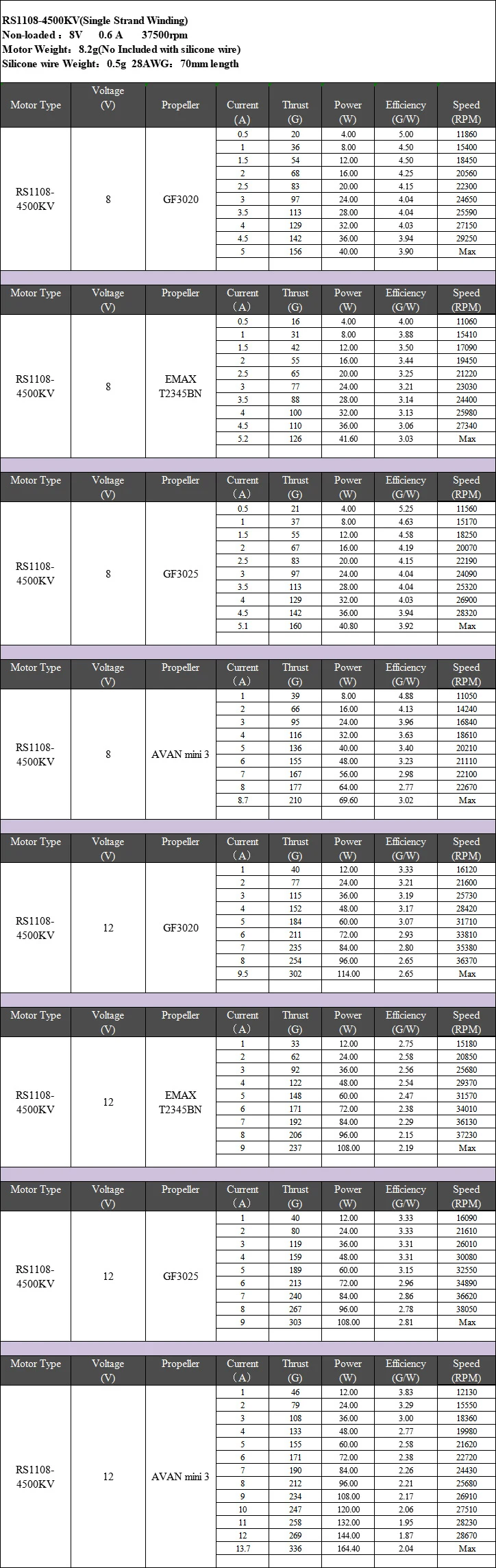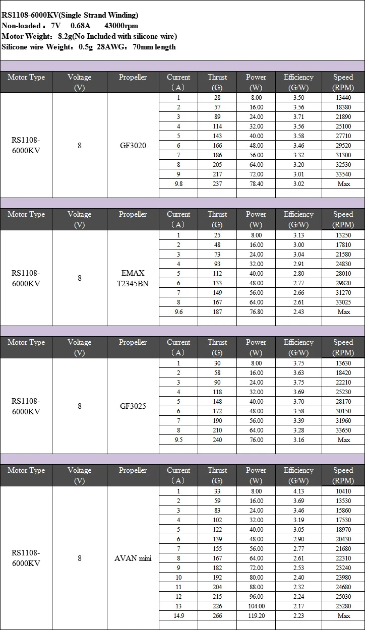 Улучшенный по знаменитым гоночным спецификациям 1106 бесщеточный двигатель, используемый в линейке продуктов Babyhawk R, EMAX с гордостью выпускает бесщеточный двигатель гоночной спецификации 1108. С феноменальным крутящим моментом, больше мощности будет доступно вам по требованию для любой ситуации. В сочетании с серией AVAN из 2-3 дюймовых пропеллеров, линейная характеристика полета и контроль будут доступны для вас, давая вам преимущество против соревнований. Если вы установите на существующую модель Babyhawk R, вы можете настроить себя отдельно от других пилотов с превосходной мощностью и контролем. Рамки: 9N12P КВ: 4500кв/5200кв/6000кв Длина: 20,5 мм Диаметр: 14,2 мм Количество ячеек: 2-3S Макс. Тяга: 336 г (RS1108 4500KV на 3S) 358 г (RS1108 5200KV на 3S) 266 г (RS1108 6000KV на 2S) Диаметр вала: 1,5 мм Пропеллер: 2 "-3"