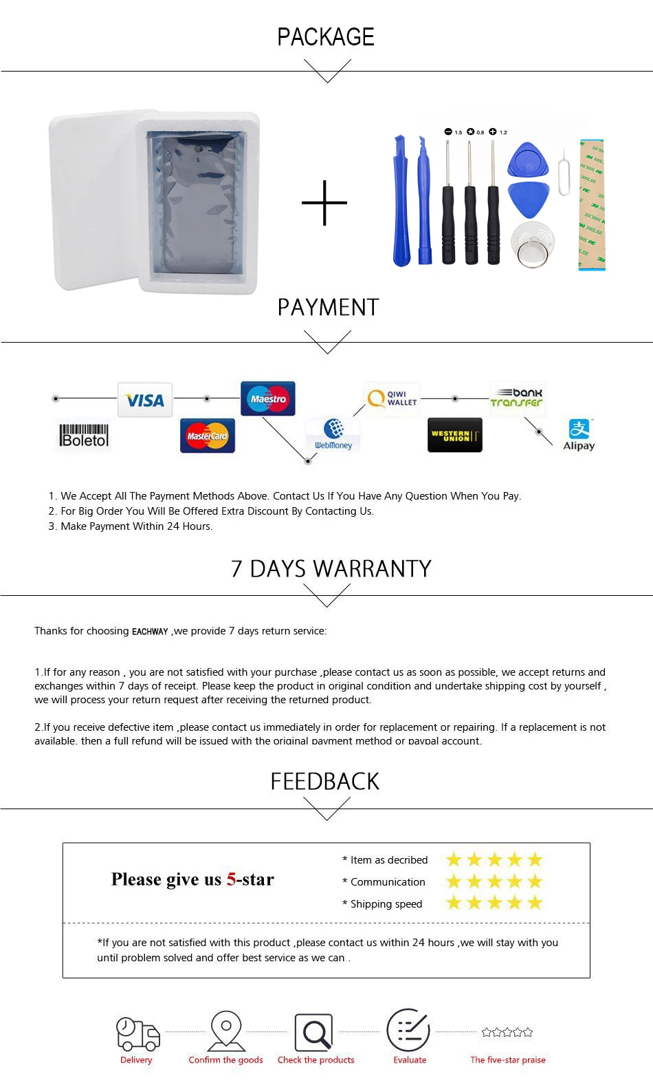 * Высококачественный ЖК-дисплей для Motorola Moto One* Этот товар является fullyForMotorola Moto One Hyper* Все детали 100% протестированы перед отправкой* Посылка включает в себя: цельнокроеное платье из ЖК-дисплей Дисплей + 1 комплект из 9in1 инструменты (подарок) + цельнокроеное платье из клейкую ленту 3м (подарок)* Цвет: черный/белый* Вариант: черный (пожалуйста, выберите правильный цвет и вариант)* Отличное послепродажное обслуживание.* Короткое время доставки.* Ремонт или замена старого сломанного треснутого поврежденного неисправного сенсорного ЖК-экрана.* Лучшее послепродажное обслуживание.* Внимание:* Пожалуйста, помните, что проверяйте ваш продукт перед установкой. Если нет, будет трудно определить ответственность, если ЖК-дисплей поврежден. Таким образом, как только ЖК-дисплей будет установлен, любое повреждение, нанесенное человеком, мы не несем никакой ответственности.Если есть какие-либо проблемы, пожалуйста, пришлите мне видео, которое показывает переднюю и заднюю стороны продукта и процесс тестирования.* Что в посылка:1 шт. x ЖК-экран1 Набор инструментов x 9 в 11*3 м клей