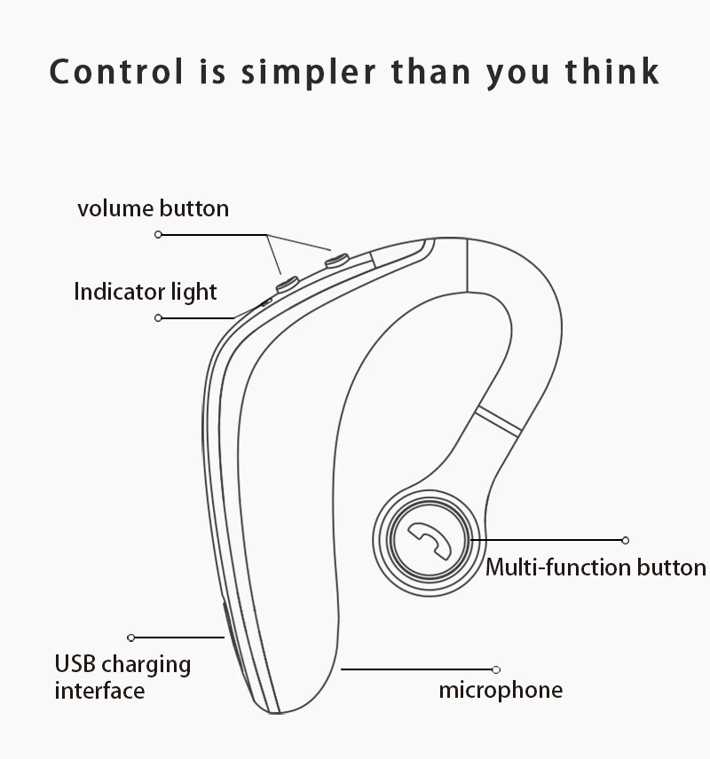 Тип ношения: наушники-вкладыши с крючком Функция: беспроводные наушники Соединительный интерфейс: Micro USB Версия Bluetooth: V5.0 Источник питания: Встроенная перезаряжаемая батарея (литий-ионная батарея) Время зарядки: до 0,5hrs. Время работы в режиме разговора: до 20 часов Время прослушивания музыки: до 19 часов Дальность передачи: более 10 м (более стабильная) Время работы в режиме ожидания: до 200 часов