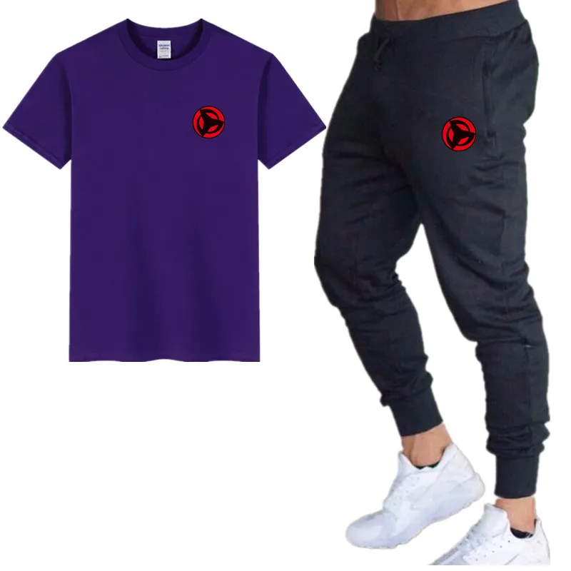 Летние мужские комплекты футболки + штаны комплекты из двух предметов Повседневный Спортивный костюм Мужская 2019 Повседневная футболка тренажерные залы фитнес брюки мужские наборы