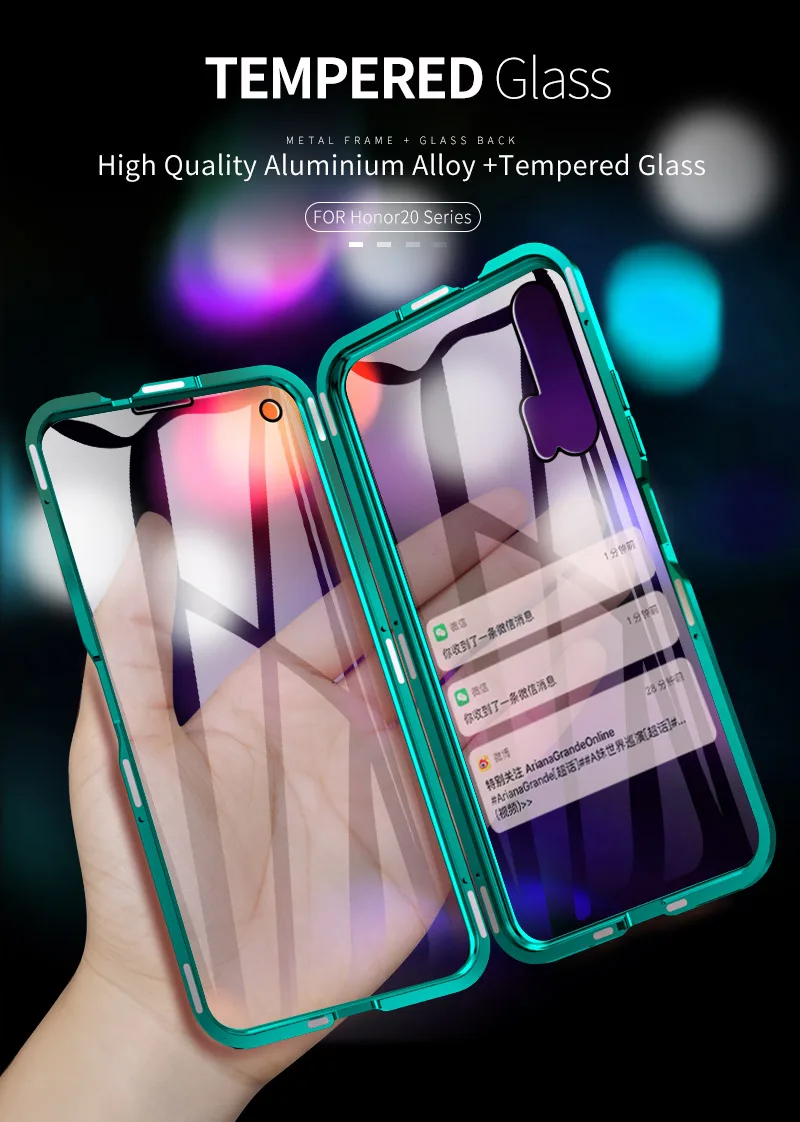Роскошный чехол 360, полное покрытие для huawei Honor 20 Pro, Передняя Задняя стеклянная Магнитная крышка для huawei Honor 20, легкий протектор, чехол