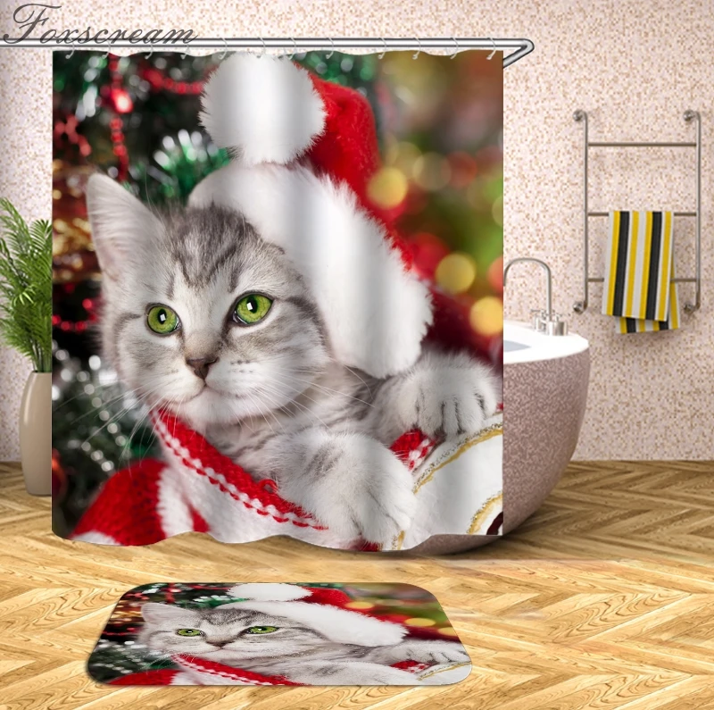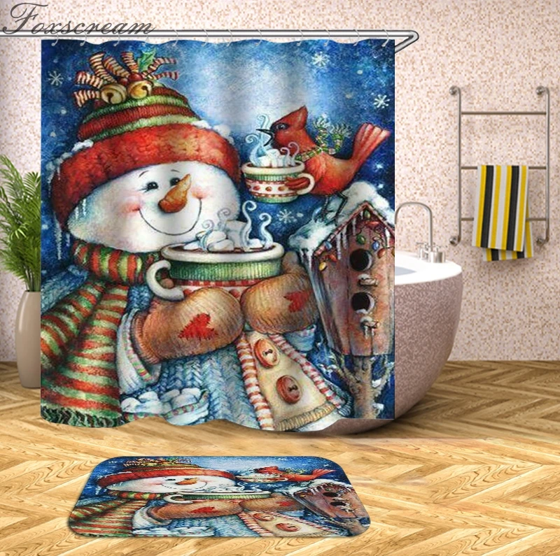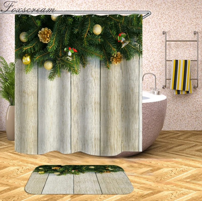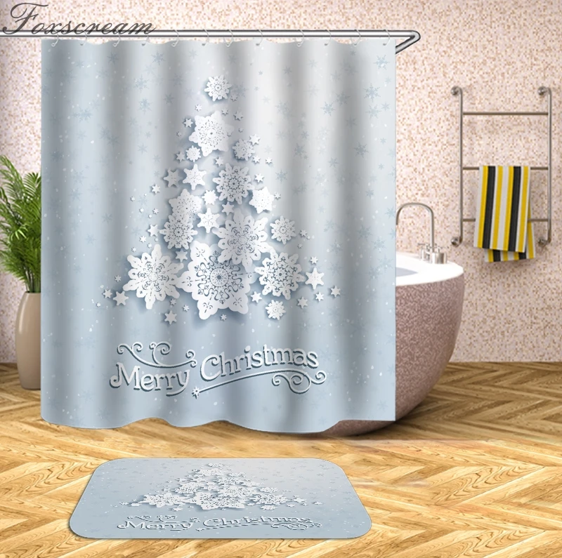 Рождественская водостойкая занавеска для душа с крюком решетчатая украшение