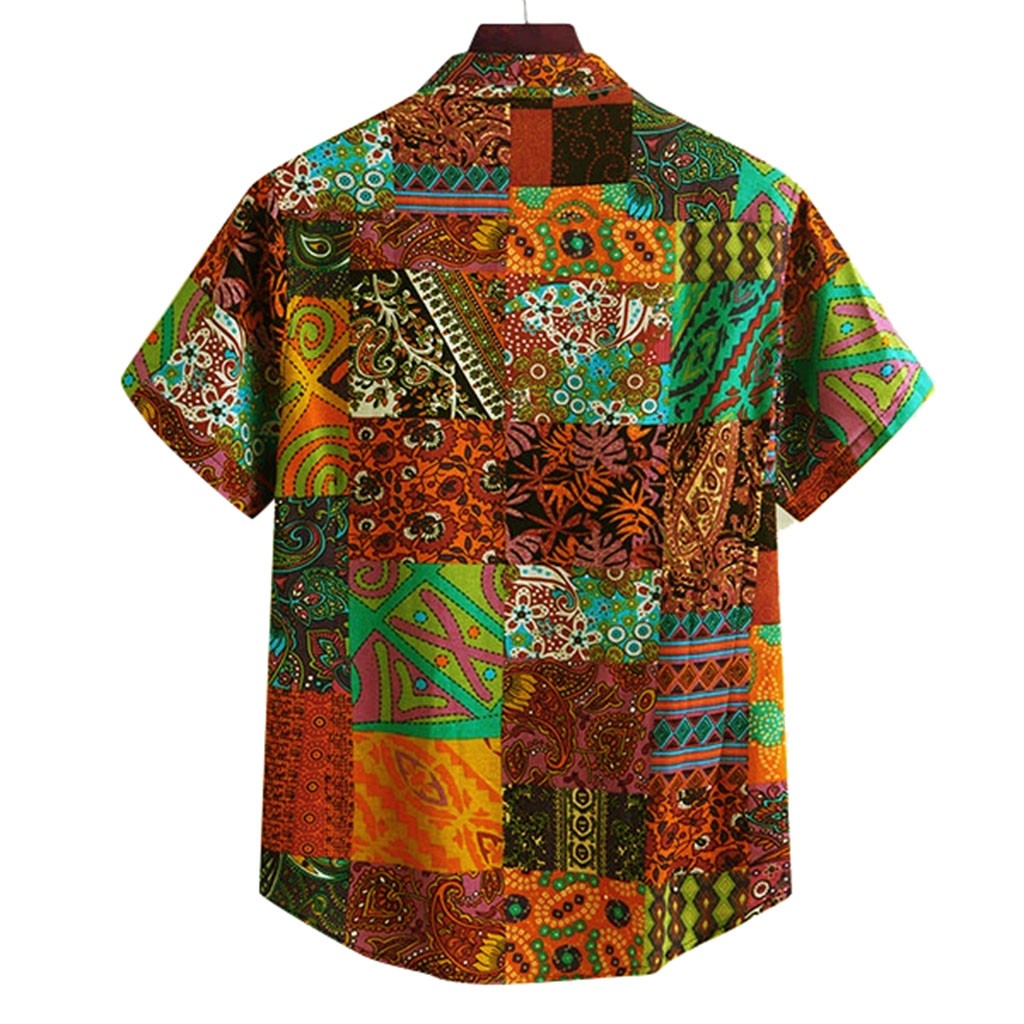 Мужская разноцветная летняя свободная Гавайская Повседневная рубашка с короткими рукавами и пуговицами