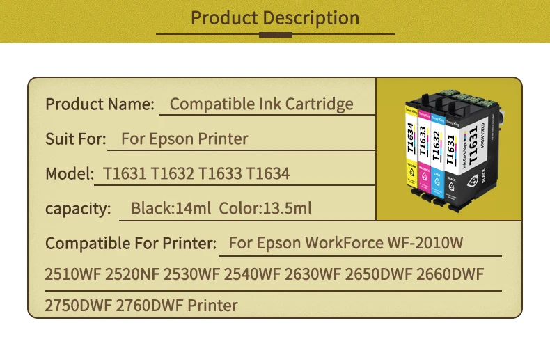 3 шт. X forEpsonT1634XLink картридж желтого цвета (полный с чернилами и чипом)