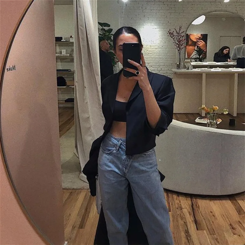 Macheda свободные джинсы с высокой талией одежда для женщин повседневные синие