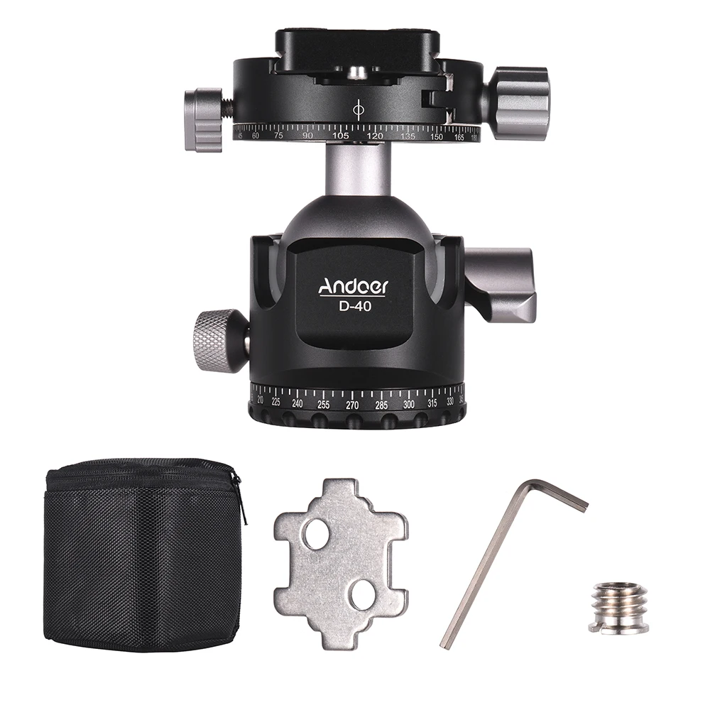 Большая фиксирующая ручка D-40 шаровой головкой имеет широкий дизайн ручки, блокировка мощная и удобная в эксплуатации. Если фиксирующая ручка препятствует использованию, вы можете установить ее под своим углом. Он может контролировать угол наклона съемки.