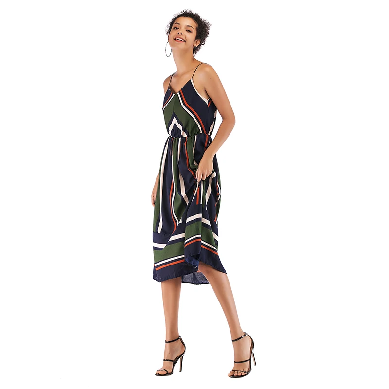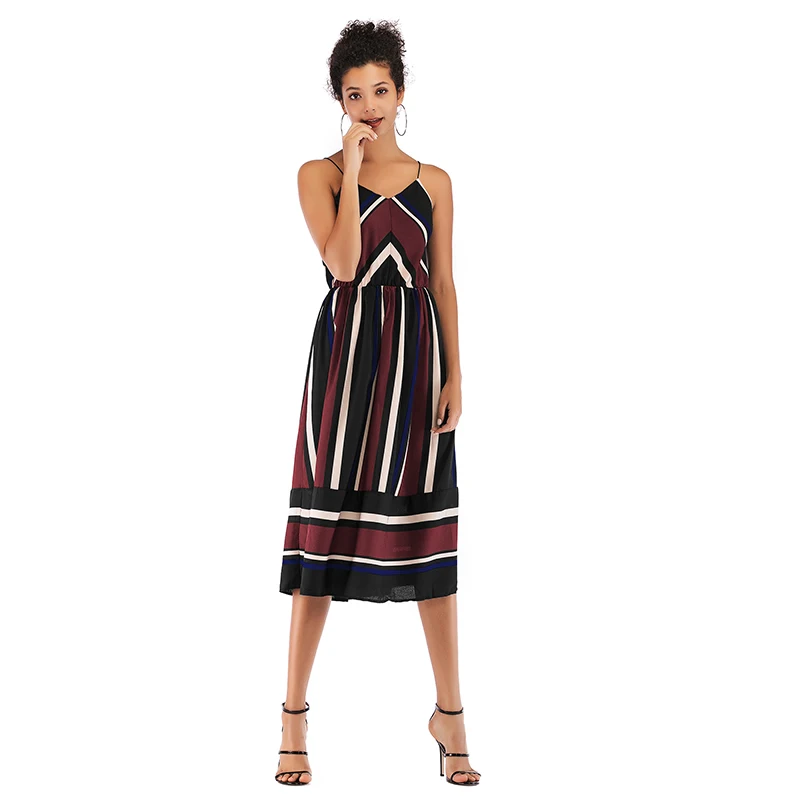Сексуальное платье на бретельках женское повседневное шифоновое летнее платье в полоску с открытой спиной женское элегантное платье-комбинация пляжный стиль миди платья Femme
