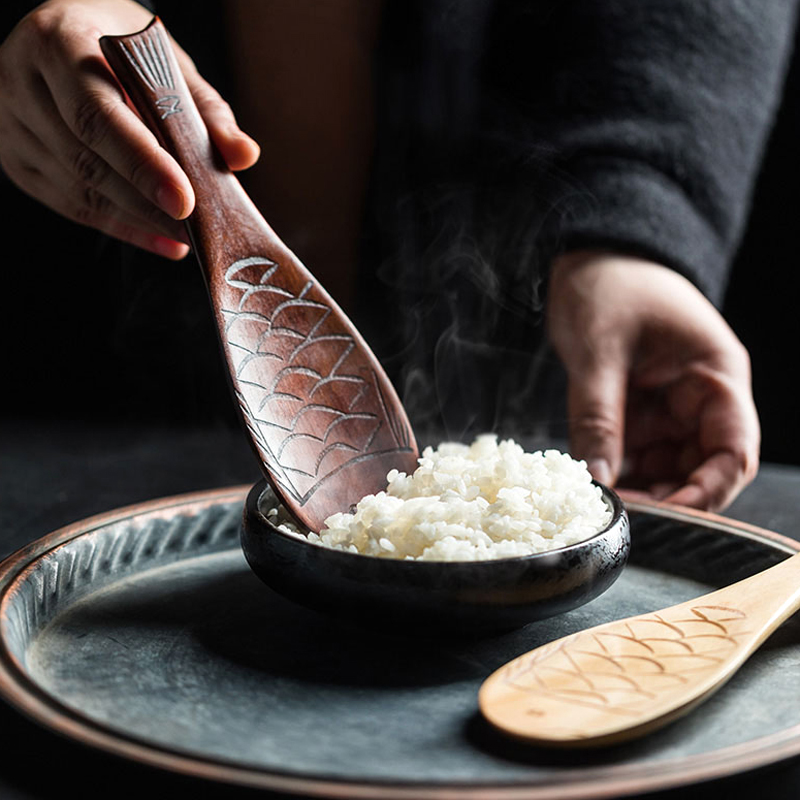 1 шт., деревянная ложка для риса, китайская деревянная лопатка для риса, кухонная ложка, милая ложка для риса в форме рыбы, деревянный десерт, ложки для картофеля, кухонные гаджеты, инструменты для приготовления пищи