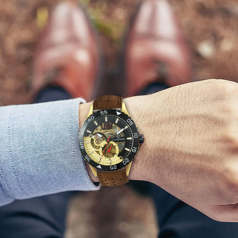 Новые мужские часы FORSINING Бренд: FORSINING Стиль: модный, повседневный, деловой, изысканный, спортивный Основная характеристика: 1. Часы креативного дизайна, модный спортивный стиль 2. Новые модные часы с кожаным ремешком. 3. Гарантия на 12 месяцев Характеристики: Диаметр циферблата: 42 мм Толщина корпуса: 14 мм Длина Часов: 245 мм Ширина ремешка: 22 мм Вес часов: 70 г Механизм: автоматический самоветер Механический (без необходимости батареи) Материал зеркала: Hardlex Тип застежки: Пряжка Светящиеся стрелки Водонепроницаемость: Водонепроницаемость (не для плавания или душа) Подходящий Случай Идеально подходит для всех случаев и мероприятий: вечерние, юбилейные, деловые, повседневные, спортивные, домашние или повседневные Комплектация: Часы-1 шт. (подарочные коробки на выбор)