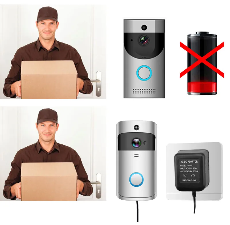 Особенности:-для решения проблемы «с низкой дозировкой». -Проводите 4 метра вдоль стены от розетки до дверного звонка. Установка: Просто подключите 2 наконечника медного провода к Винтам на кронштейне дверного звонка.