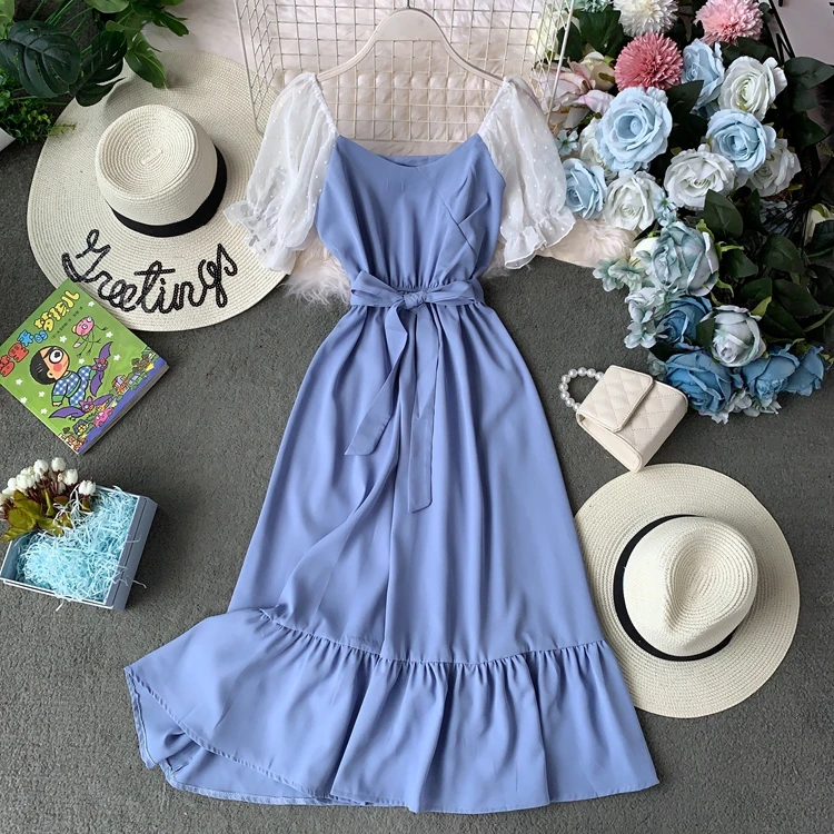 Модные женские туфли летние платье без рукавов Цвет нерегулярные подол шифон