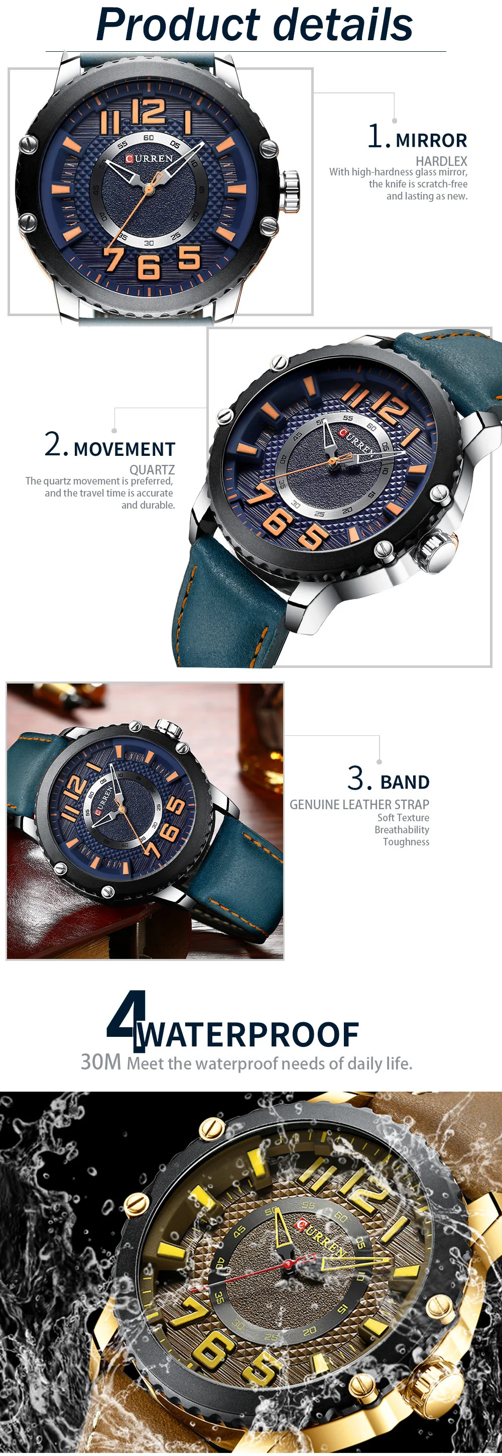 1. Топ люксовый бренд Curren часы с кожаным ремешком 2. Уникальный дизайн стильные деловые часы