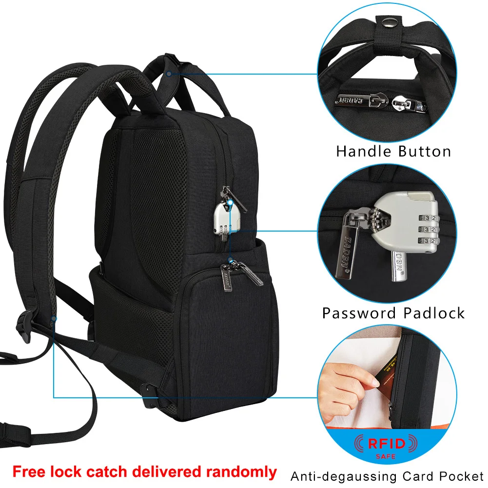 【Large capacity】dimensions: 33*17*43 см для ухода за ребенком для мам/12,99*6,69*16,93 "(Д x Ш x В). Подходит для фотоаппарата 1 шт. боди + 2 объектив + штатив + 15,6" ноутбук + ipad + одежду. Или DJI Mavic Pro/Air. Всего 11 Карманов, это не только модный и профессиональный рюкзак для камеры, но и может использоваться как повседневный дорожный рюкзак. 【Multi functions】 ①Доступ сбоку, быстрый доступ к камере в течение 2 секунд; ② Usb-порт для зарядки, который используется для камеры, сотового телефона или другого Электронные устройства; ③ Навесной замок на молнии с паролем; ④Двойная водонепроницаемая, изготовленная из водонепроницаемого нейлона, с защитой от дождя Крышка. Защищает камеру и фотографии от влаги; ⑤Основной Отдел был разделен на 2 части, набивкой на молнии; Carry сумка для багажа, удобная для путешествий. 【Multi functions】 ① Быстрый Карманный радиочастотный сканер на плечевом ремне для VIP-карты, доступ Карта, идентификатор слова; ②Наплечный ремень, растягивающийся, с эффектом памяти Пена, удобная и Удлиняющая; ③Paddings были сделаны из 7-слойная ударопрочные, с защитой от падения Материал. Лучший уход за аксессуарами для фотографии; ④Многофункциональный ремень, который позволяет избежать тряски во время езды или скалолазания; ⑤The нижней части эта сумка для фотоаппарата Материал, износостойкие, в том, что Защищает его от повреждения и грязи. [Идеальный дизайн и хорошее качество] ① Каждый плечевой ремень, соединенный с рюкзаком для камеры, используется технология скрещивания, Подшипник нагрузки до 50 кг. Прочная и лучшая защита для аксессуаров камеры; ② Устойчивая к царапинам, водонепроницаемый, вес 1,4 кг/3 фунта и безопасность нейлоновый материал. Все самое лучшее; ③CADeN эксклюзивная молния из сплава, которая не сломается и не ржавит в течение 5 лет. 【Satisfied services】 20 лет опыта фабрики с более чем 1000 сотрудников сосредоточены на фотоаппарат оборудование для фотосъемки, worthtrusty для вас; Подарок-дождевик + молния подвесной замок с паролем.