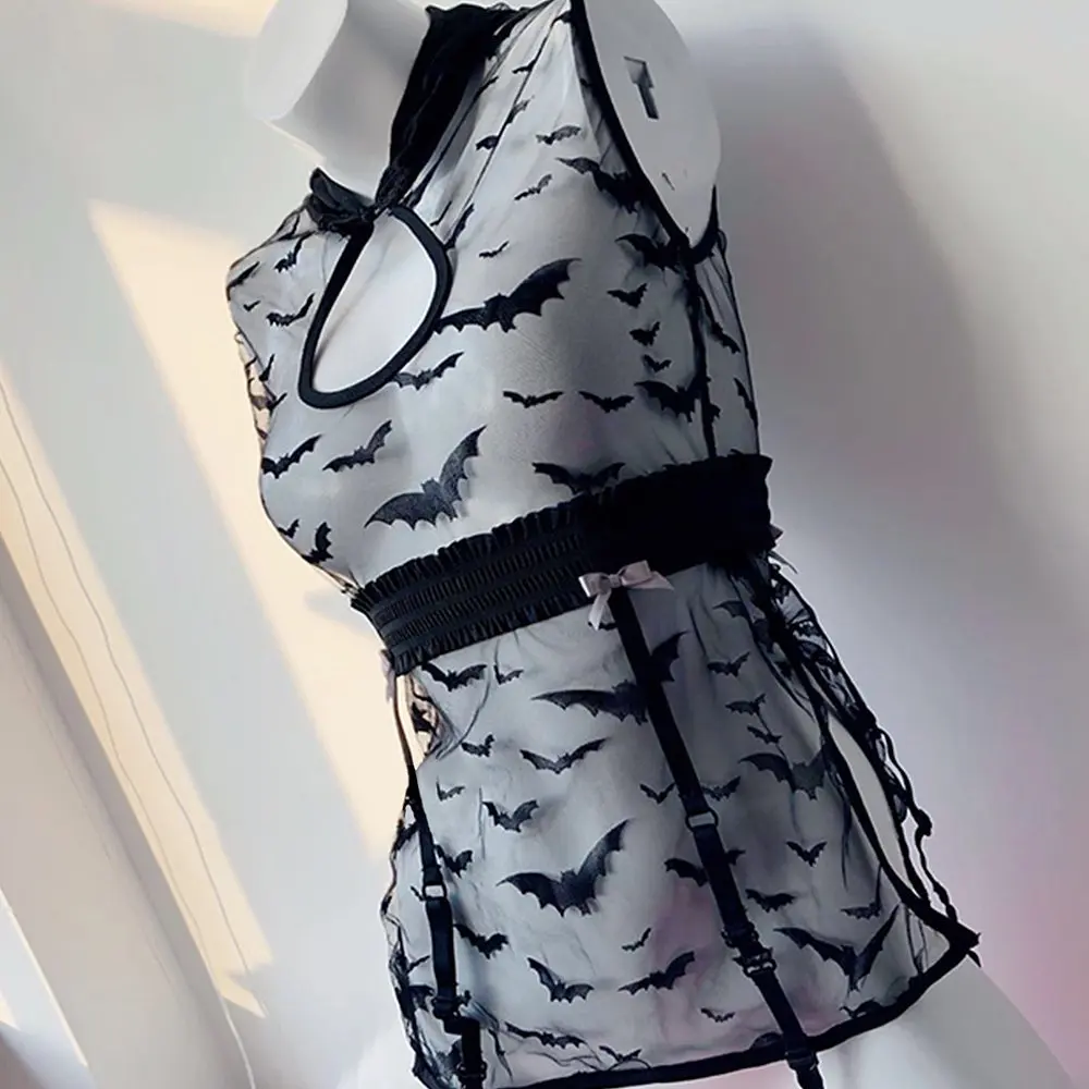 Прозрачная сетчатая тюль: сезон подходит для тонкой ткани, комплект мини-бикини в нем, дизайн с разрезом по бокам, расслабляющий и сексуальный