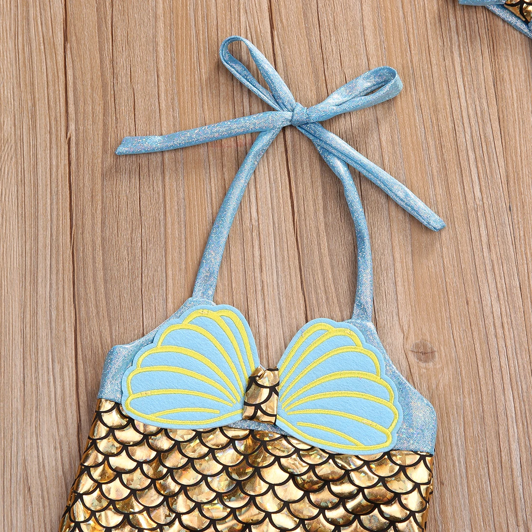 2019 3 шт. Одежда для детей; малышей; девочек комплект бикини купальный костюм русалки летний ванный комплект + повязка на голову, купальный костюм, танкини для девочек, для детей возраста от 0 до 8 лет старый Fit