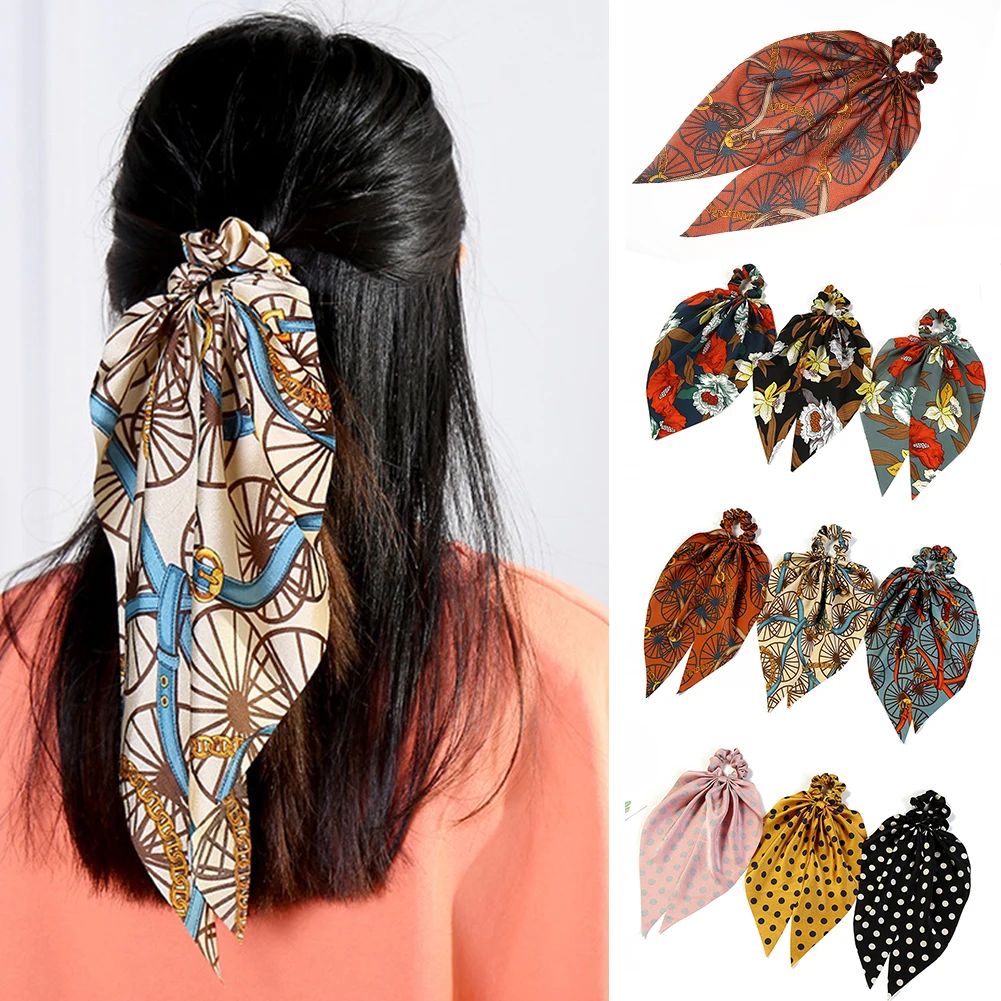 Галстуки для волос в горошек с цветочным принтом, сделай сам, УЗЕЛКОВЫЙ бант, шарф для волос, конский хвост, резинки