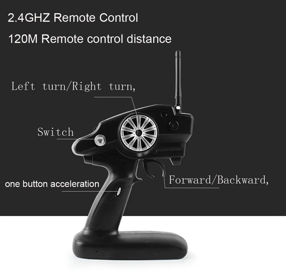 - Функция дистанционного управления: левый поворот, правый поворот, вперед, назад, одна кнопка ускорения