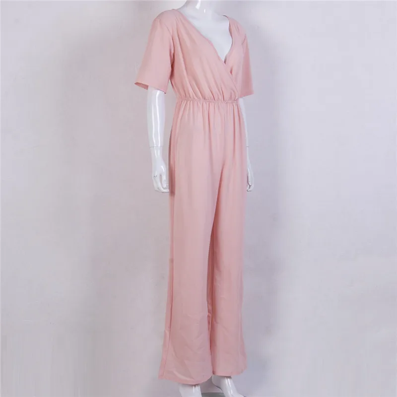 Женский свободный комбинезон с глубоким v-образным вырезом, вечерние комбинезоны с коротким рукавом, Длинные S-XL брюки, широкие брюки, 2019