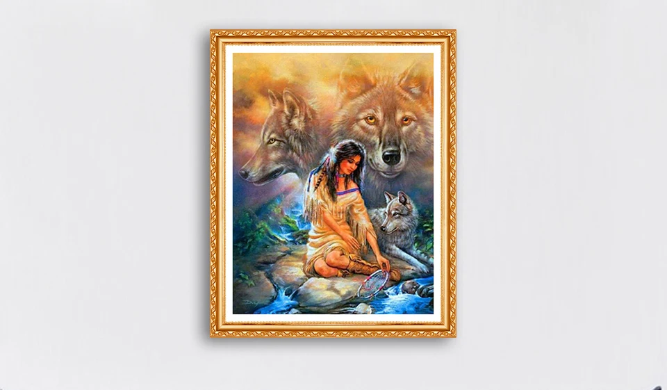 Полный квадратный/круглый дрель 5D DIY Алмазная картина "индийская женщина волк" 3D вышивка крестиком домашний декор A00828