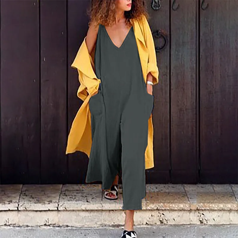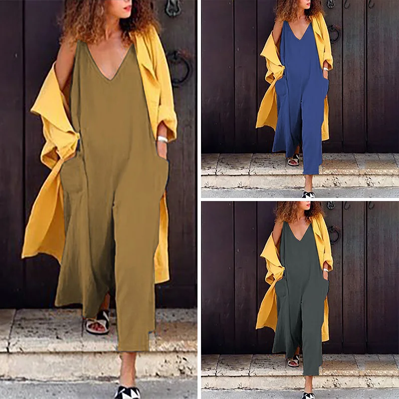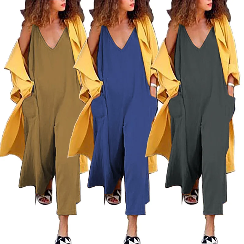 * Описание товара:Женская одежда, повседневный свободный, v-образный вырез, без рукавов, большой карман, комбинезон/комбинезон, плюс размер