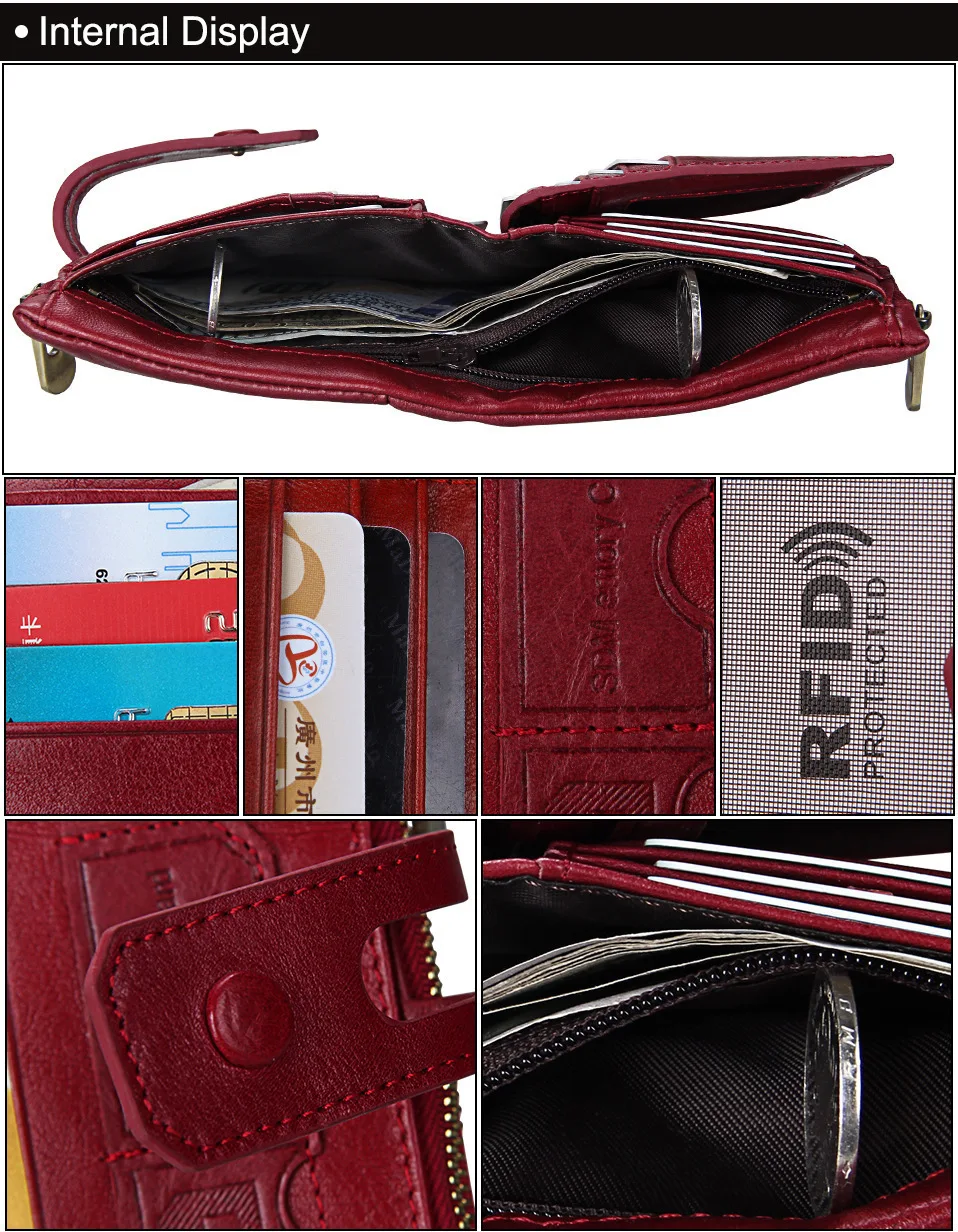 Женские бумажники из натуральной кожи органайзер средней длины кошелек воловьей